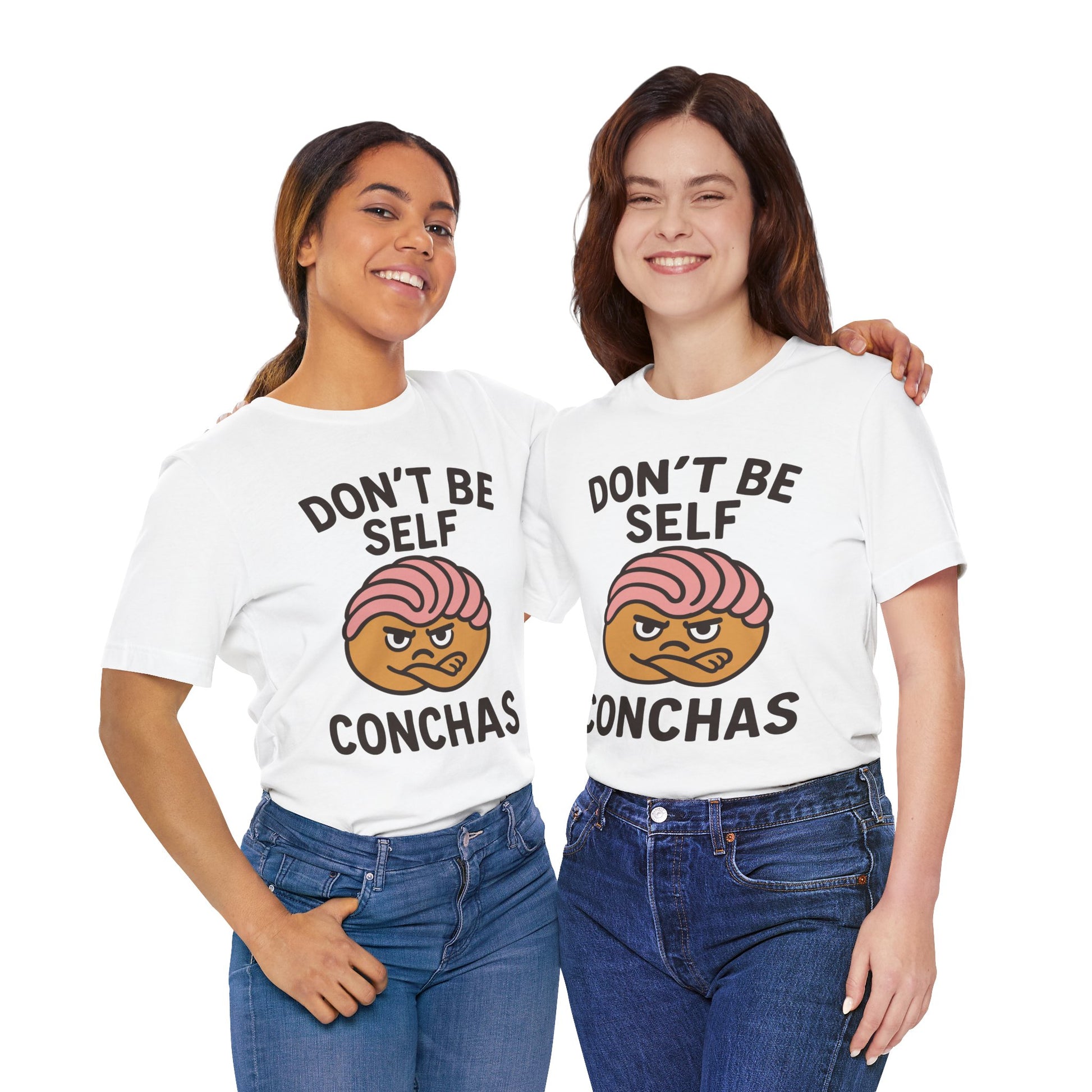 Add a little sweet sass to your style with our Don't Be Self Conchas t-shirt. This punny Latinx-inspired graphic tee features a grumpy concha pastry with serious attitude—and a message that’s as clever as it is culturally iconic.